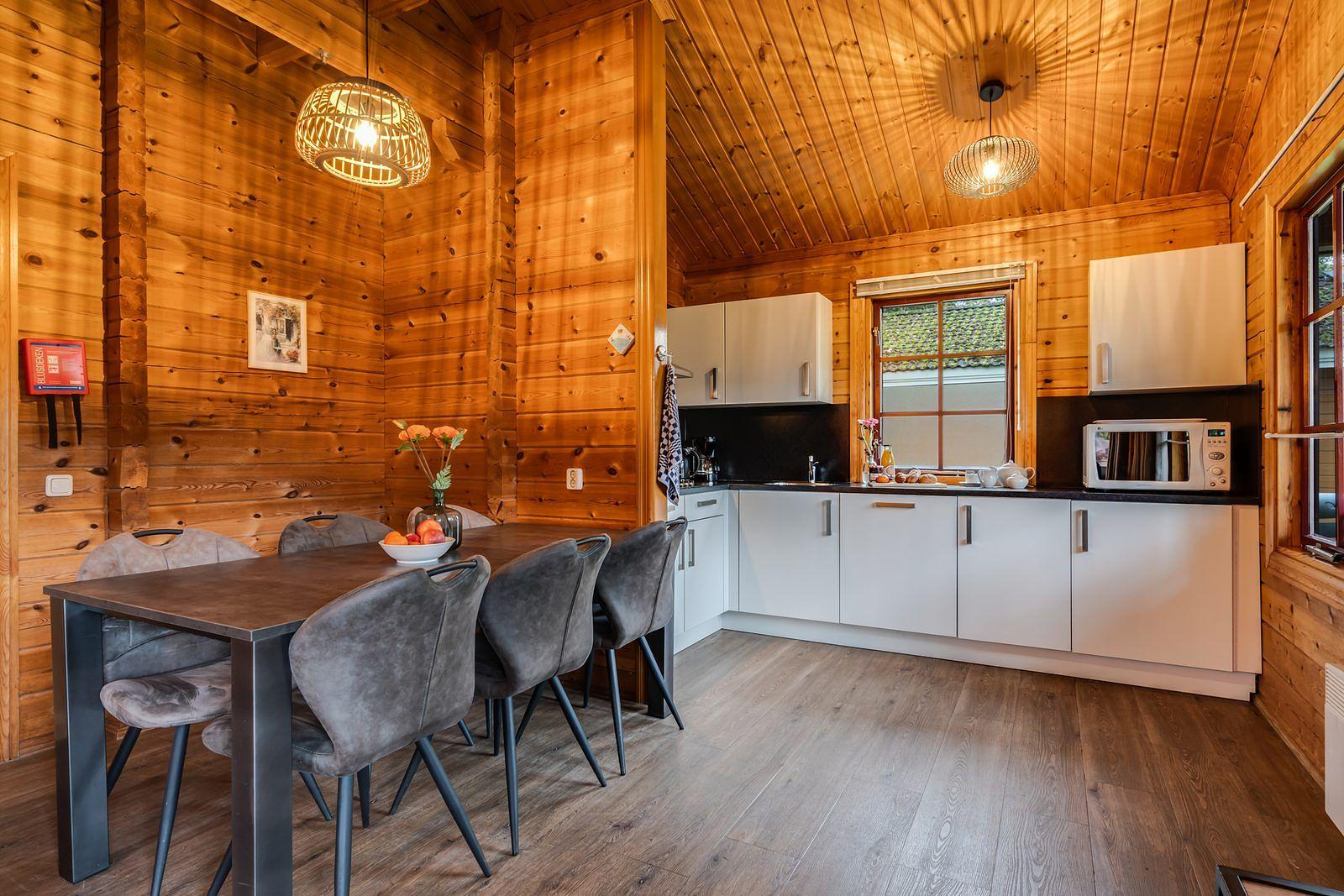 Vernieuwde 4-persoons Finse chalet met vaatwasser en wasmachine in het Vechtdal. Comfort en sfeer gecombineerd.